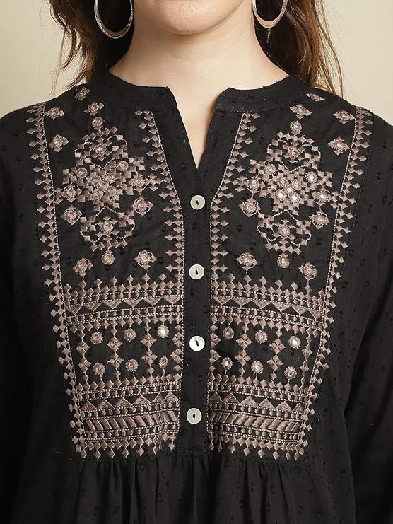 - FEATURES & EXCELLENT FITTING :- Sleeves :: Fold up Sleeve, Collar style :: Mandarin, Kurti Length : 30 Inch, Pattern : Embroidered ,Type : flare style , Pack Of : (1 Kurti)